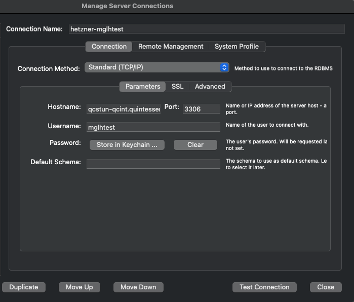 hetzner-mglhtest - Connection Method: Standard (TCP/IP)