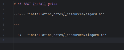 - Reference to the respective file in "resources" from other files where the content is to be reused: --8<-- "folder/_resources/reusable_file"