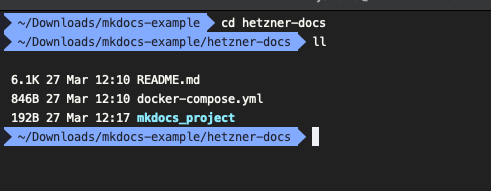 - Open your terminal and navigate to recently unpacked hetzner-docs path: